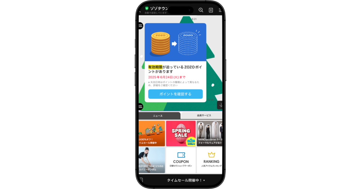 なぜなら、ZOZOTOWN公式から、ポイント失効9日前に有効期限が迫っていることを教えてくれるからです。